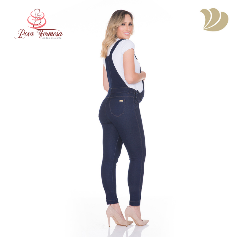 Macacão Gestante Jeans Classic com Ajustes
